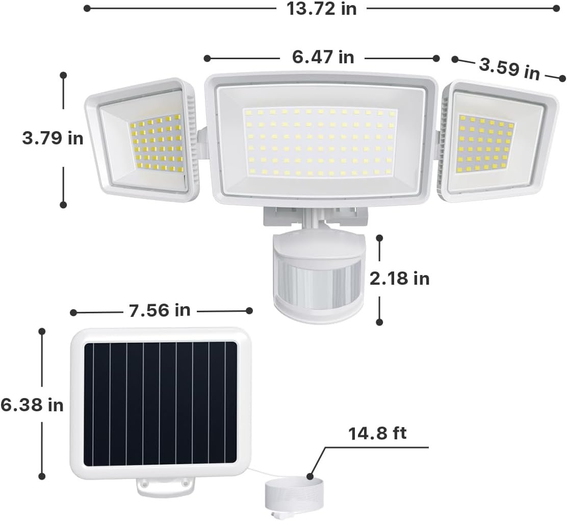 💡 [High Standard & Eco-Friendly] Our security flood light is FCC certified and IP65 water-resistant, providing green energy with a separate solar panel for flexible charging. The 2200mAh battery ensures longer working time, bringing more security to your home. It’s a perfect security light outdoor for garage, yard, garden, pathway, warehouse, farm.